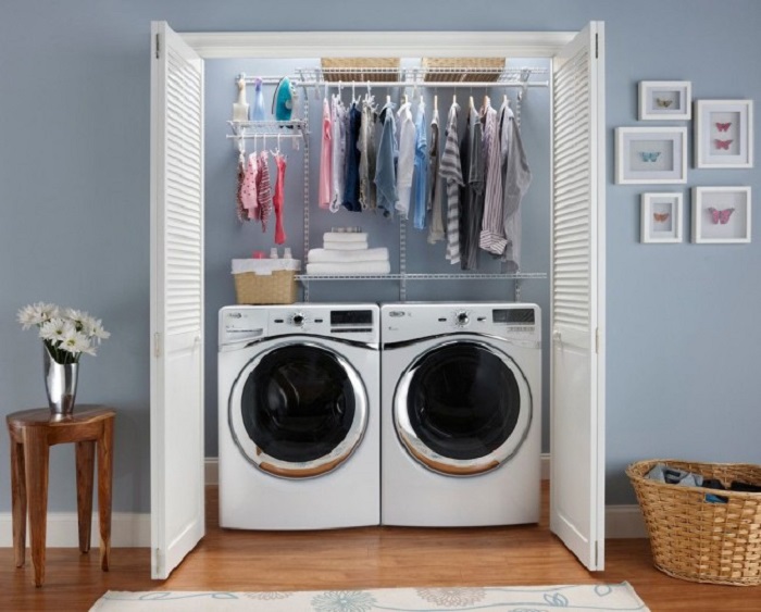 Небольшая кладовая позволит расположить в ней стиральную машинку.