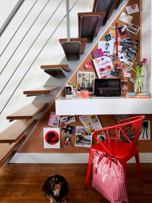 Пространство под лестницей – восхитительное место для оборудования рабочей зоны.